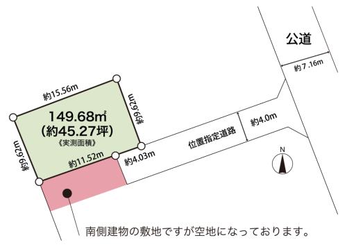 | 接道状況 | 南側 位置指定道路に4m接道 | ||||